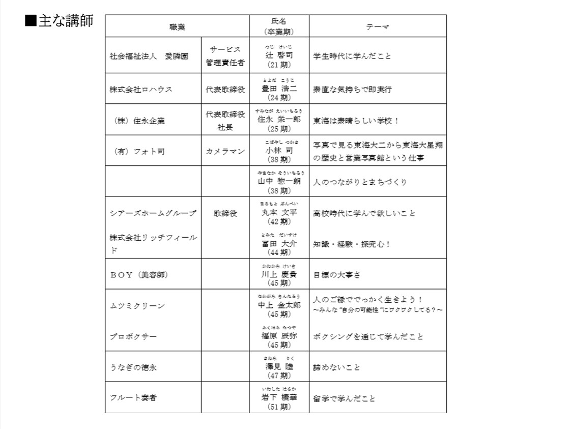 内 容 : 本校卒業生12名が社会人経験を生徒に講義