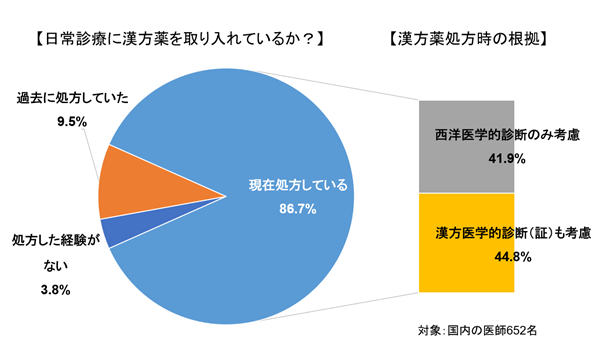 ・国内の医師685人を対象に、漢方薬の使用状況や課題をオンラインで調査